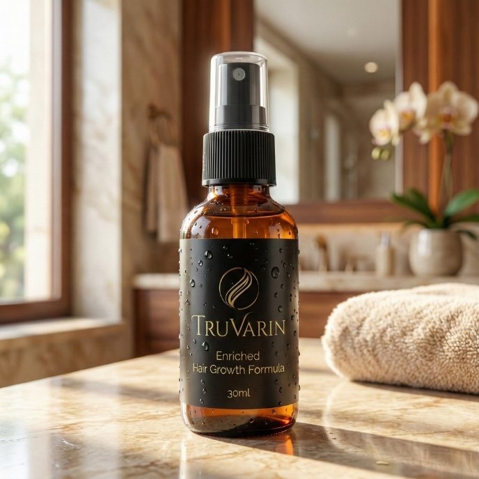 TruVarin is a topical serum designed specifically for women dealing with gradual thinning, increased shedding, or patchy areas along the hairline or crown. Its leave‑on formula is packaged in a convenient spray or dropper bottle, making it easy to apply directly to specific areas of concern on the scalp without mess or waste.