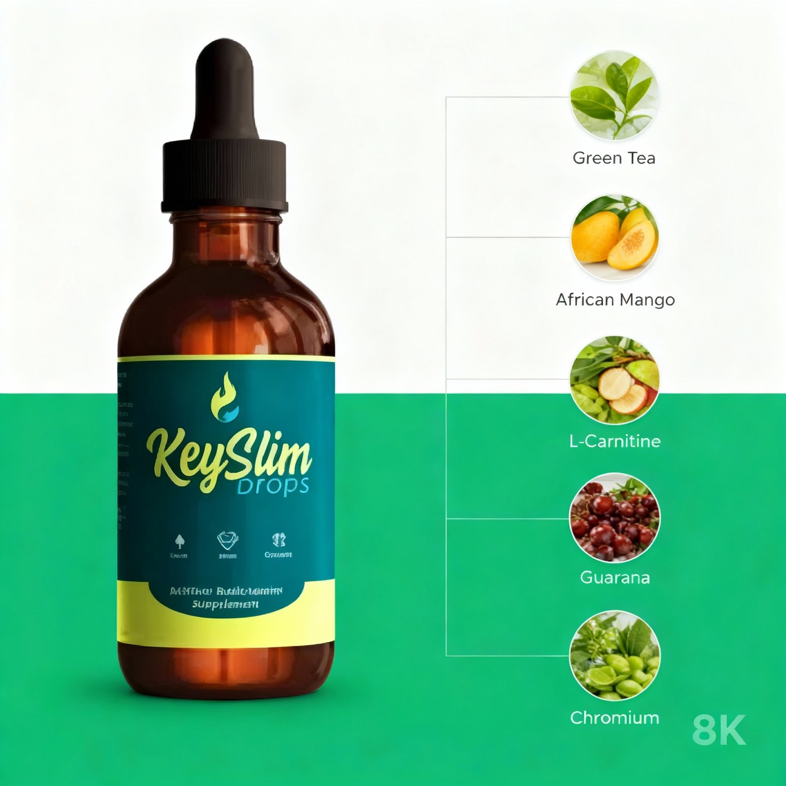 KeySlim Drops is a plant-based dietary supplement available in liquid form, specifically crafted for effective and convenient weight management. Its formula blends several powerful herbal extracts to improve fat burning and support metabolism. Favored for its fast action and ease of daily use, KeySlim Drops suits busy adults looking for practical slimming support. The product is backed by a 60-day money-back guarantee, assuring users of its quality and commitment to satisfaction.